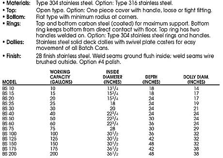Industrial Batch Cans For Handling & Storage Standard Specifications