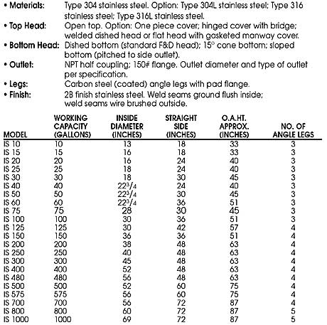 Economy Industrial Tanks For Storage & Mixing Standard Specifications