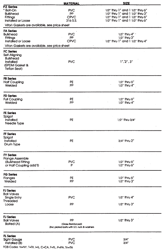 3/4", 1", 1 1/4", 11/2", 2", 3", 4" and 6" |